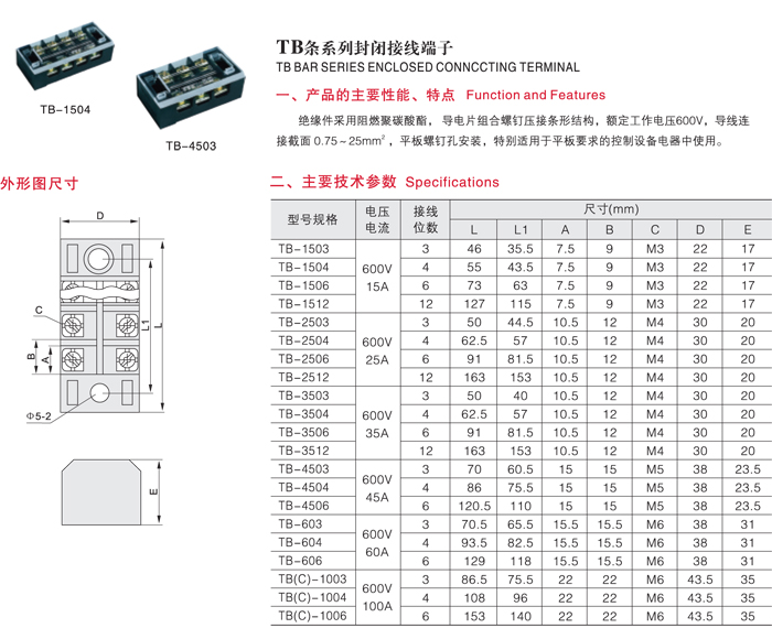 TB条系列封闭接线端子