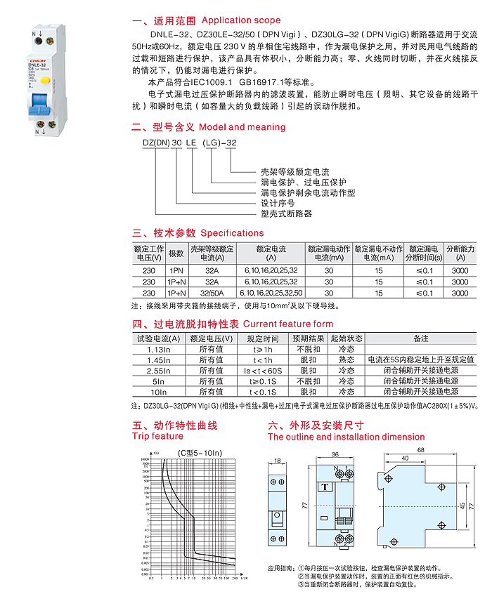 DNLE-32(相线+中性线+漏线)系列保护断路器
