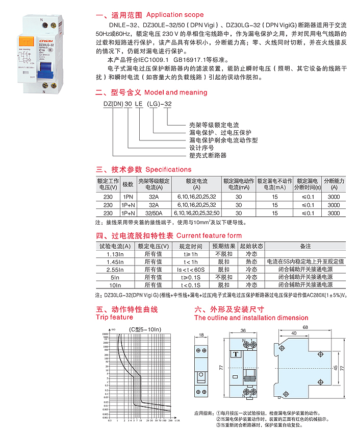 DZ47LE-50(63)系列漏电断路器