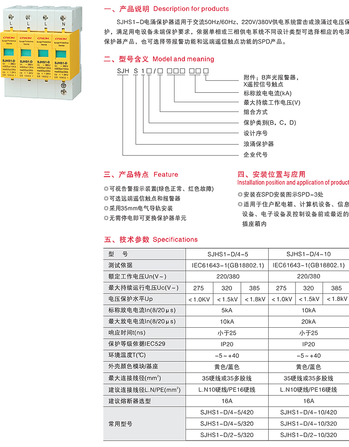 SJHS1-D系列电源电涌保护器
