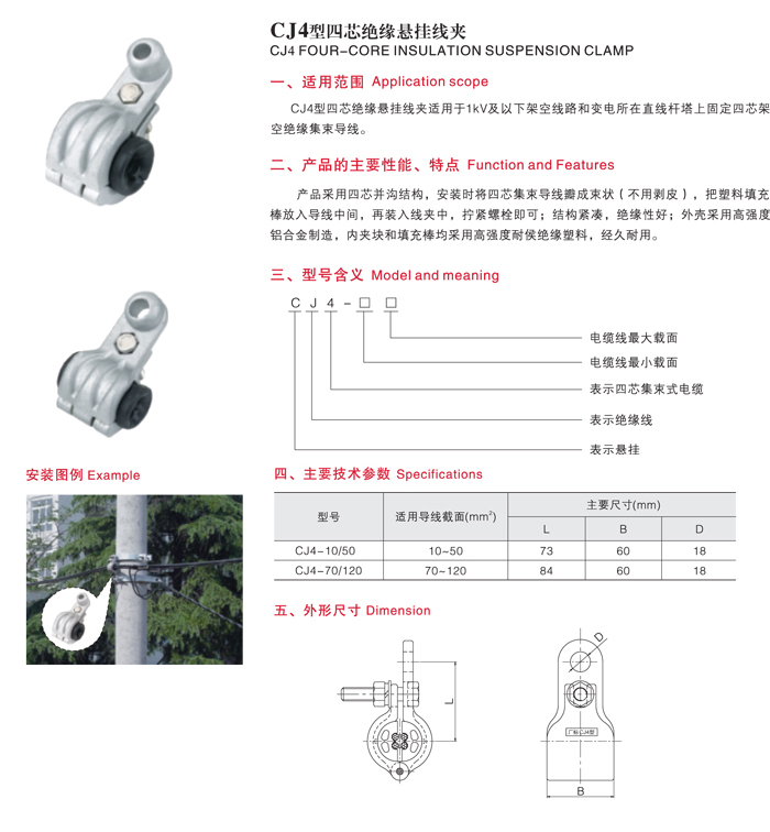CJ4型四芯绝缘悬挂线夹