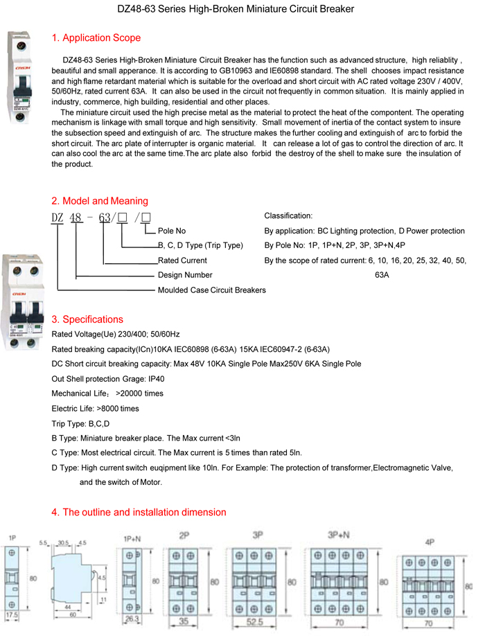 DZ48-63 Series High-Broken Miniature Circuit Breaker