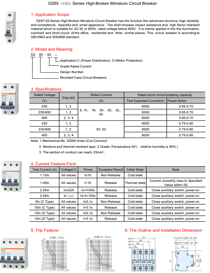 DZ65(C65N)-63 Series High-Broken Miniature Circuit Breaker