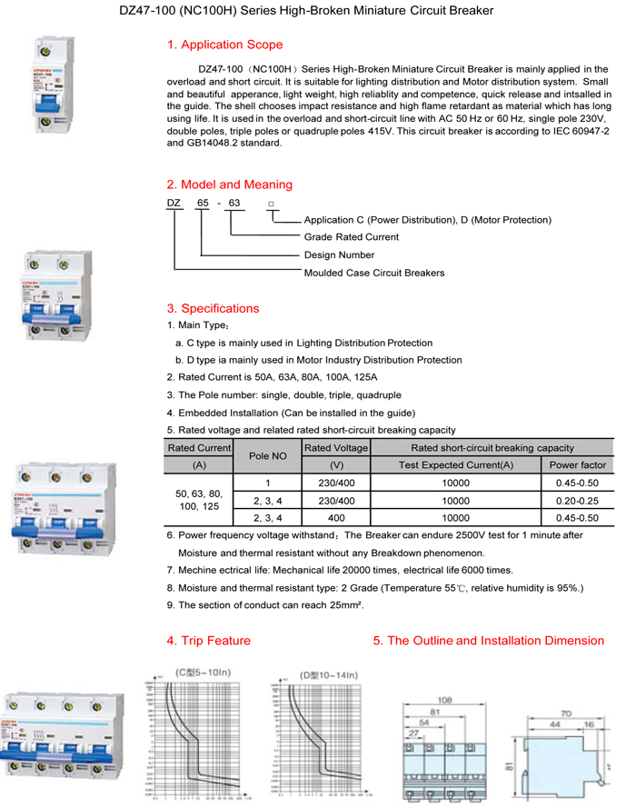 DZ47-100(NC100H) Series High-Broken Miniature Circuit Breaker