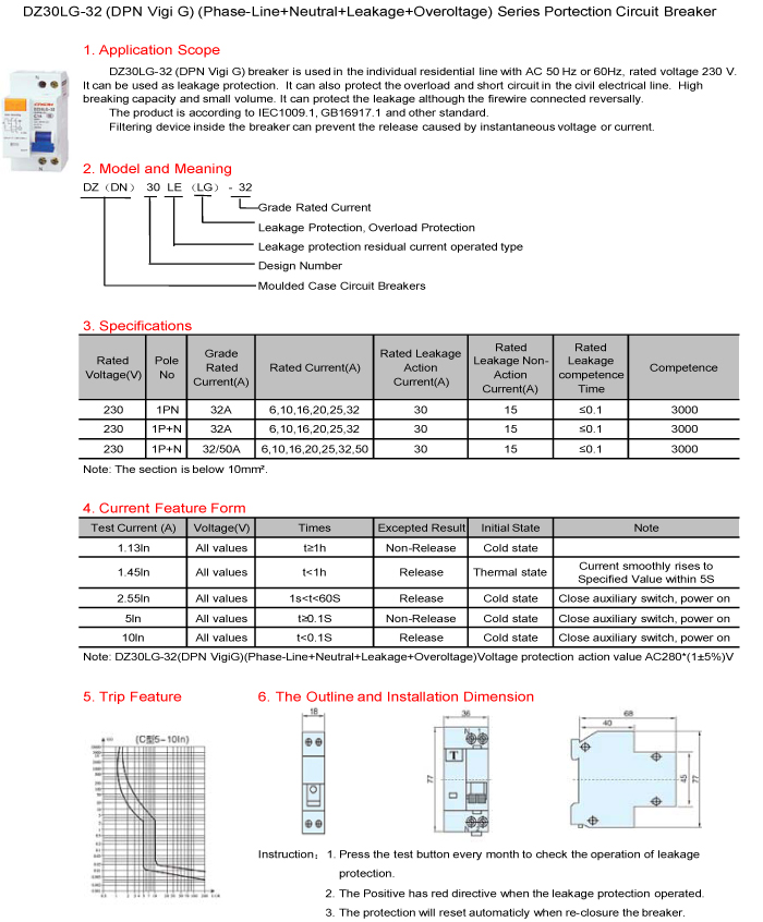 DZ30LG-32(DPN Vigi G)(Phase-Line+Neutral+Leakage+Overvoltage) Series Protection Circuit Breaker
