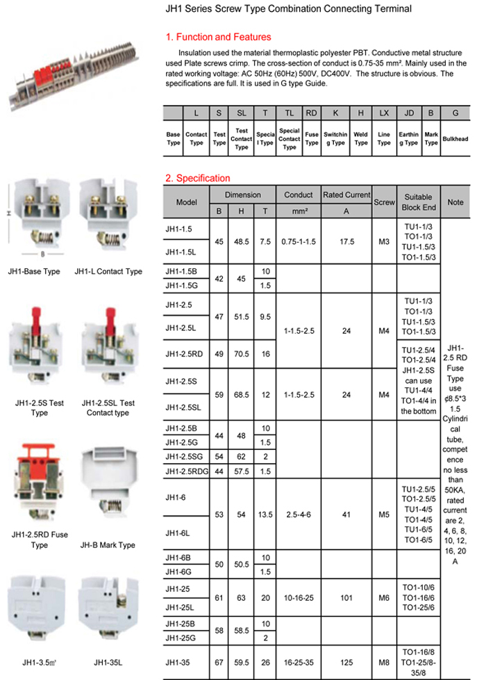 JH2 Series Barrel Type Structure Combination Connecting Terminal