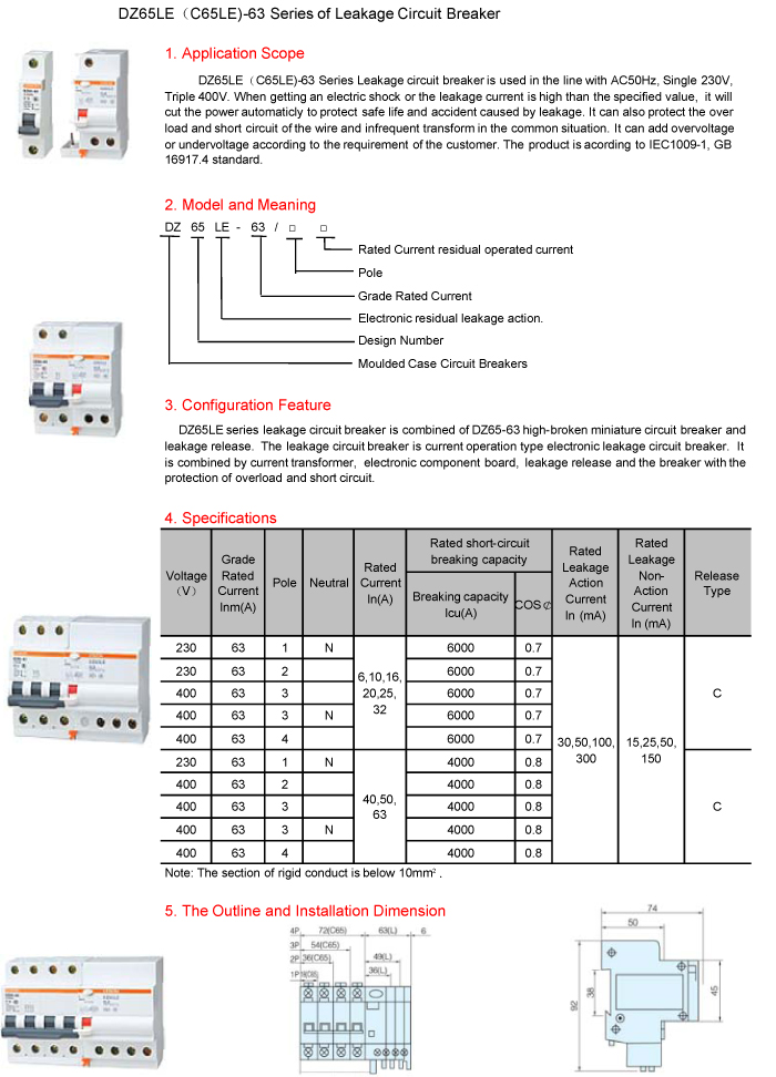 DZ65LE(C65LE)-63 Series of Leakage Circuit Breaker
